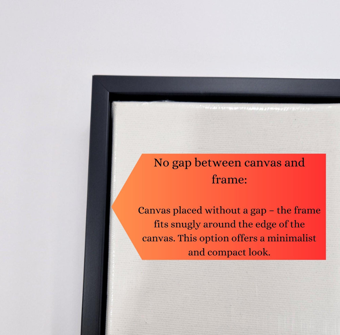 The frame will be made the exact size of the stretched canvas. We suggest adding ¼” all around. Example: For Canvas sized 8” x 10” add ¼” to each side of the canvas. 8 ½” x 10 ½” to be ordered.